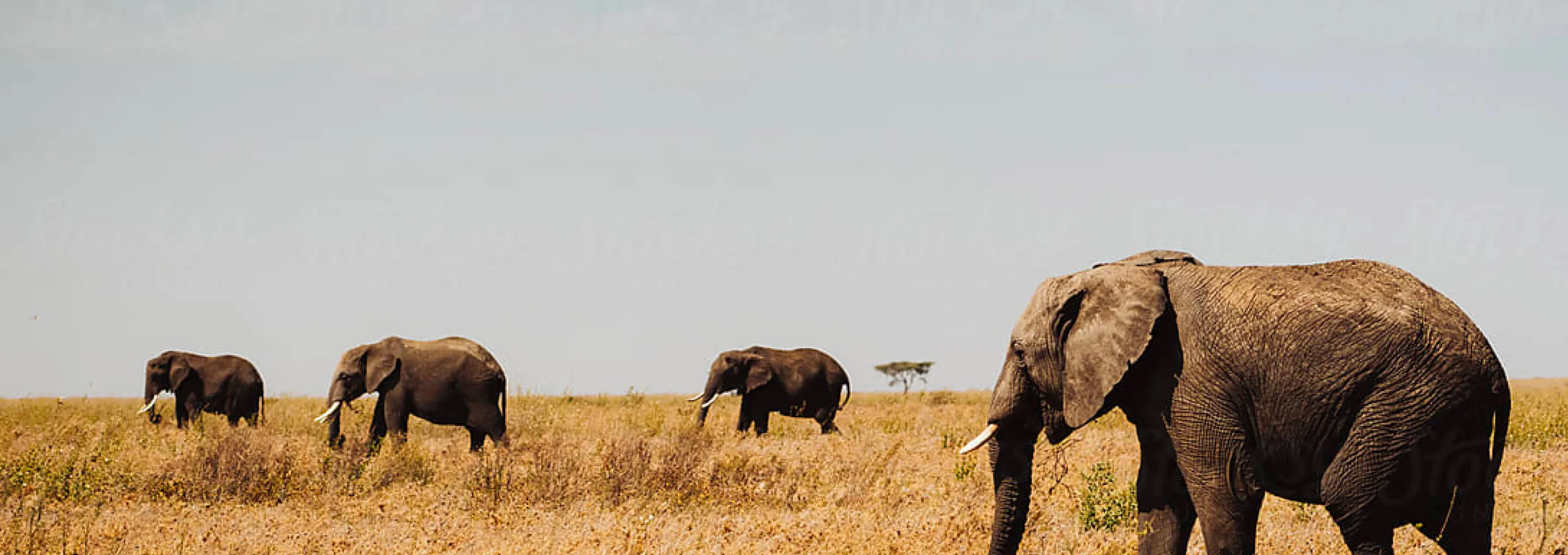 Sub-saharan landscape with wild animals and a beautiful sunset